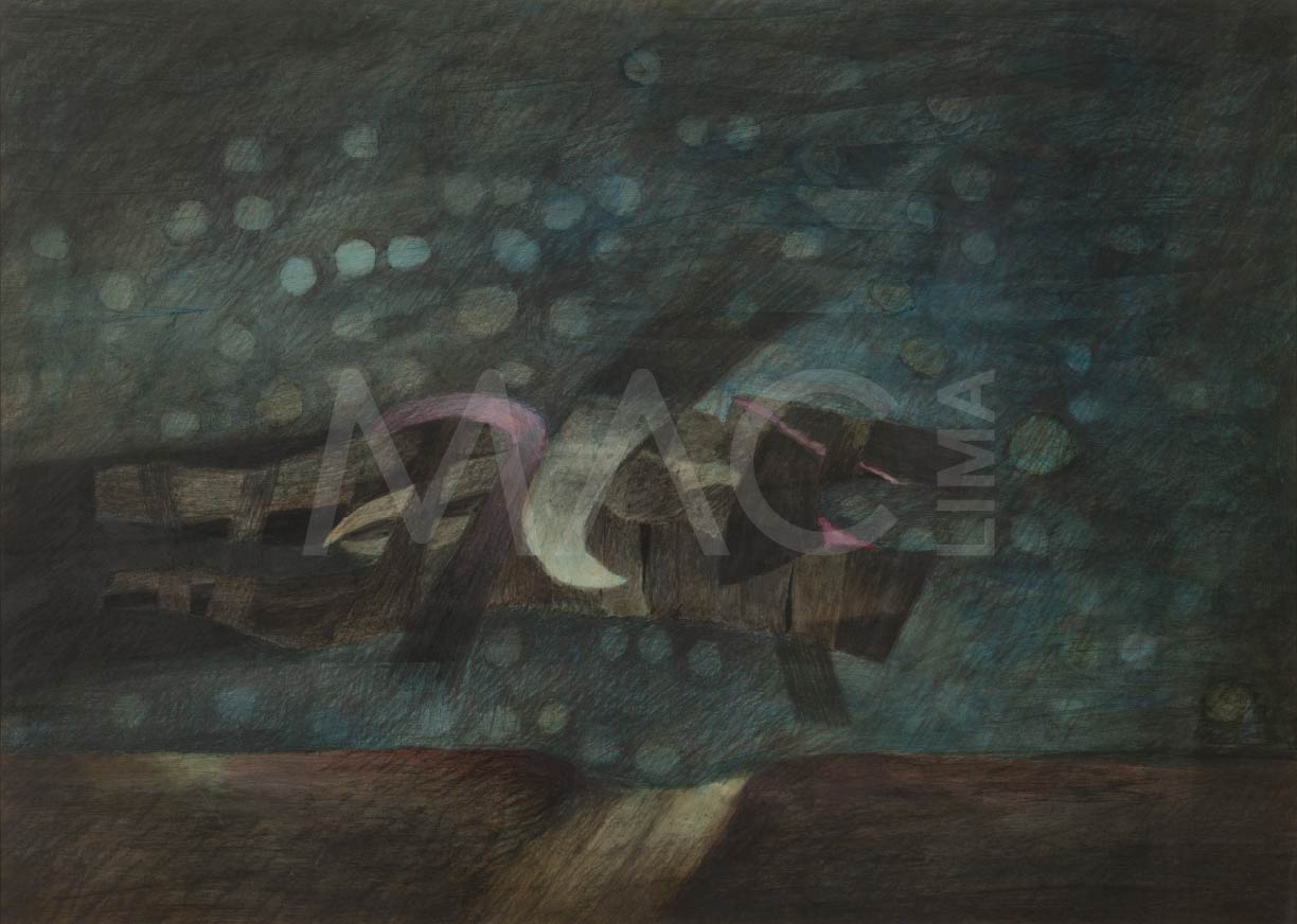 La muestra reúne diez obras de distintos soportes —pintura, escultura, grabado y película en 16 mm— realizadas entre 1946 y 2003, todas pertenecientes a la colección del MAC Lima. A través de esta selección, se propone un recorrido por las búsquedas estéticas del artista, su relación con la historia y la poesía, y su manera de conectar lo precolombino con lo abstracto.
